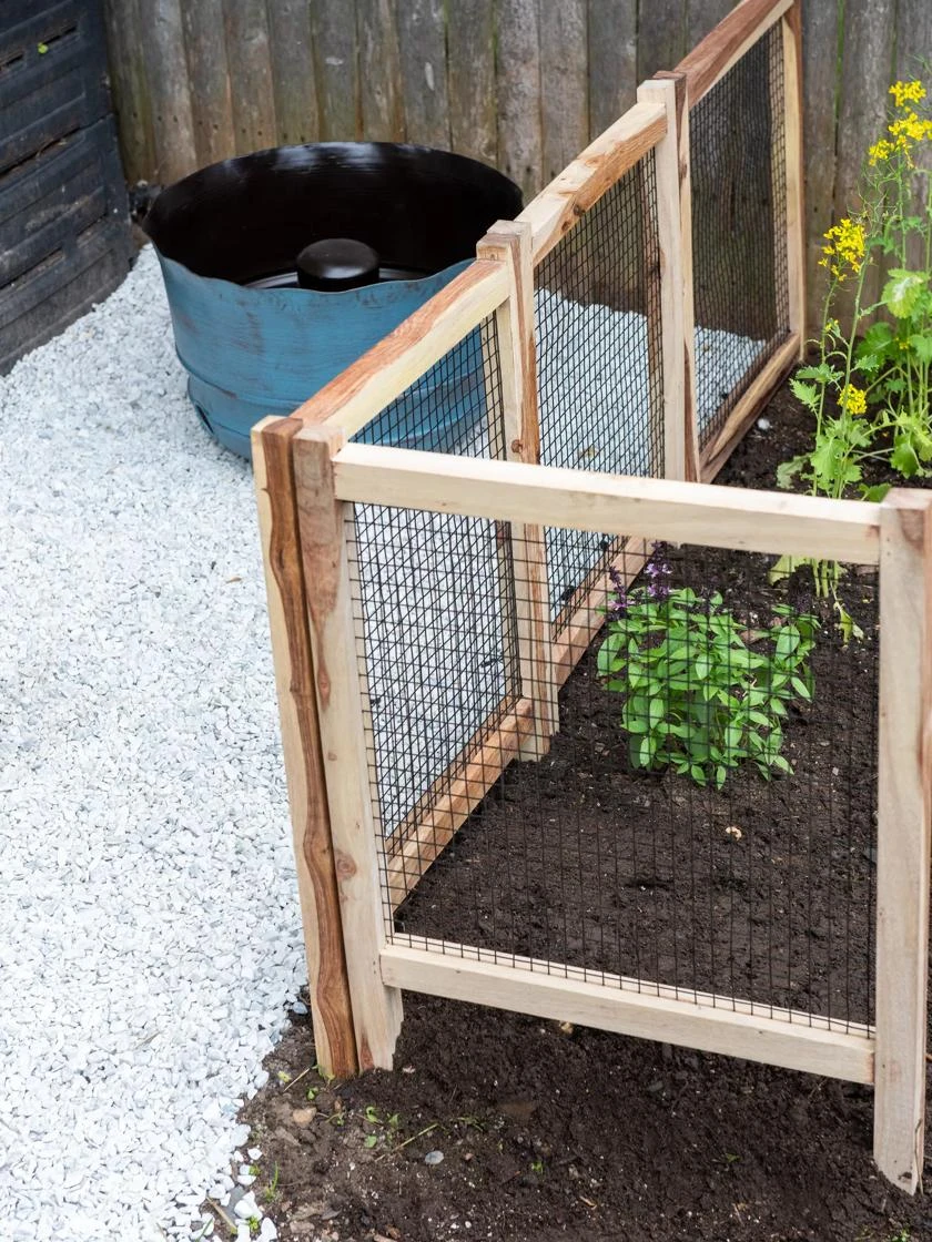 Strong, sturdy custom pest fencing can be installed to fit your unique area. Powder-coated steel wire is durable, rust-resistant, and chew-proof. Heavy duty, self-staking sheesham wood frames are sturdy, naturally rot-resistant, and look great.